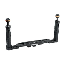 Meet our ergonomic, dual-handle tray for underwater housing, crafted from solid aluminum alloy for durability and strength. This advanced accessory features ball heads on both sides, allowing for the seamless integration of buoyancy arms and underwater photography lights, enhancing your ability to capture the depths with ease and stability. The grips are designed with a focus on human engineering, ensuring a comfortable and secure hold even in challenging aquatic conditions. Strategically placed cutouts throughout the bracket reduce weight underwater while maintaining structural integrity, making it the ideal choice for extended diving sessions. Elevate your underwater imaging with our lightweight, yet robust, aluminum alloy dual-handle tray